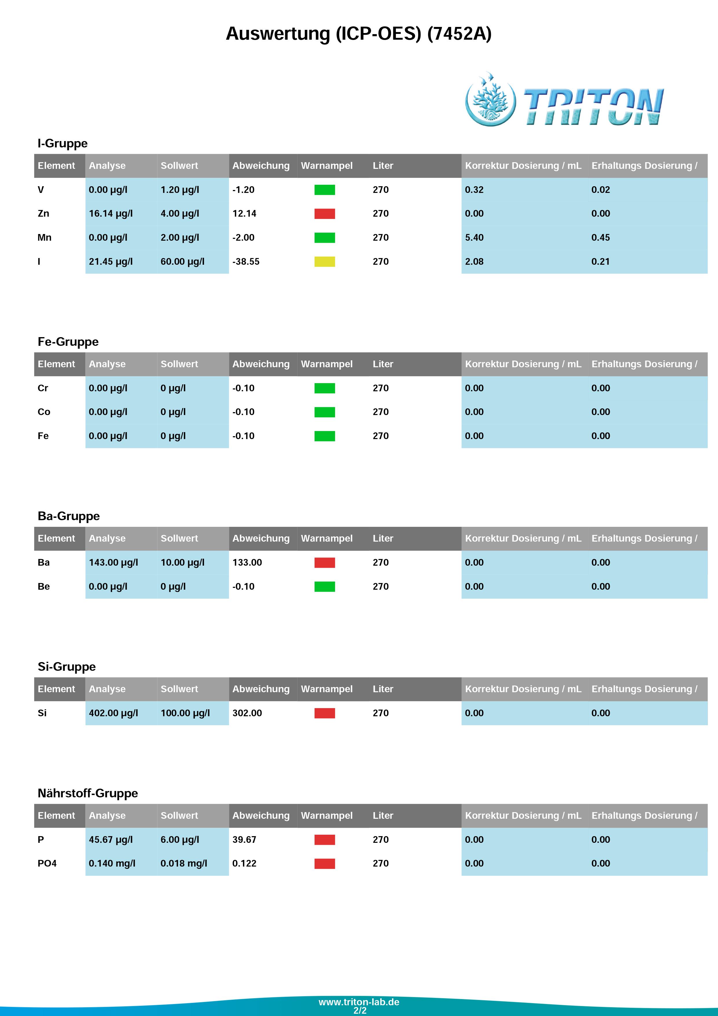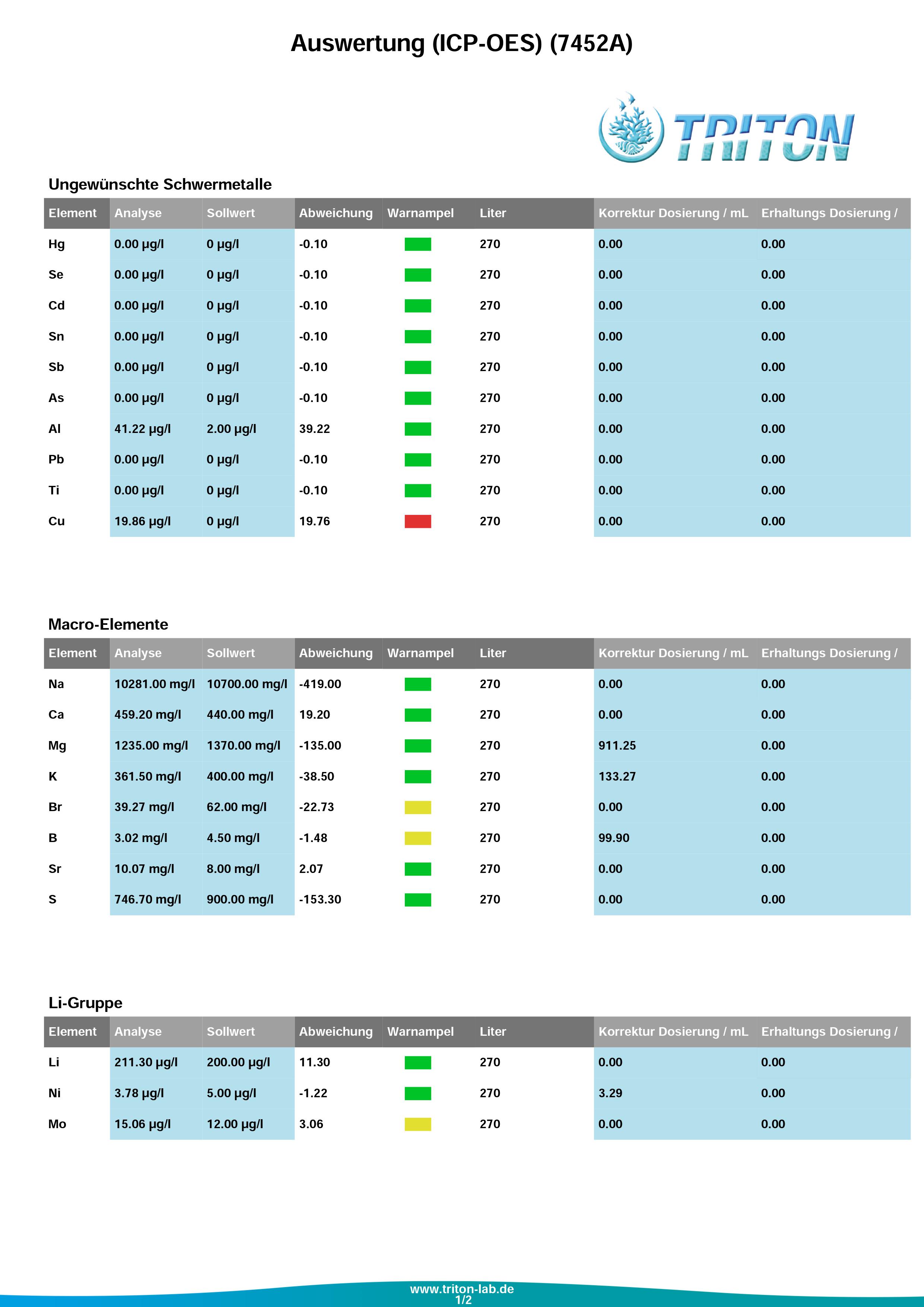 Hallo, anbei mein aktueller Triton Wassertest...Wer kann mir die Werte deuten bzw. Abhilfe zu den kritischen Werten sagen.
