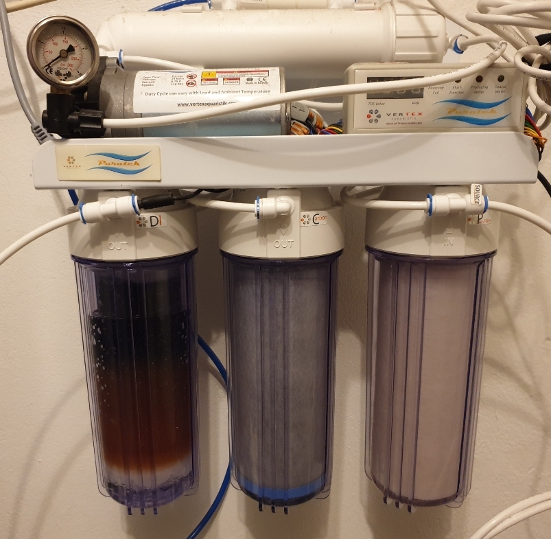 Ich habe auch 2 Kartuschen hinter der OA. Vor und zwischen den beiden Kartuschen hängt ein TDS Messgerät.