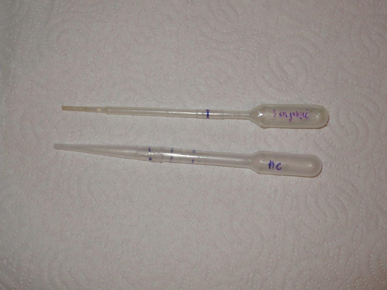 deshalb habe ich mit einem Edding an den Pipetten Striche markiert und diese beschriftet.