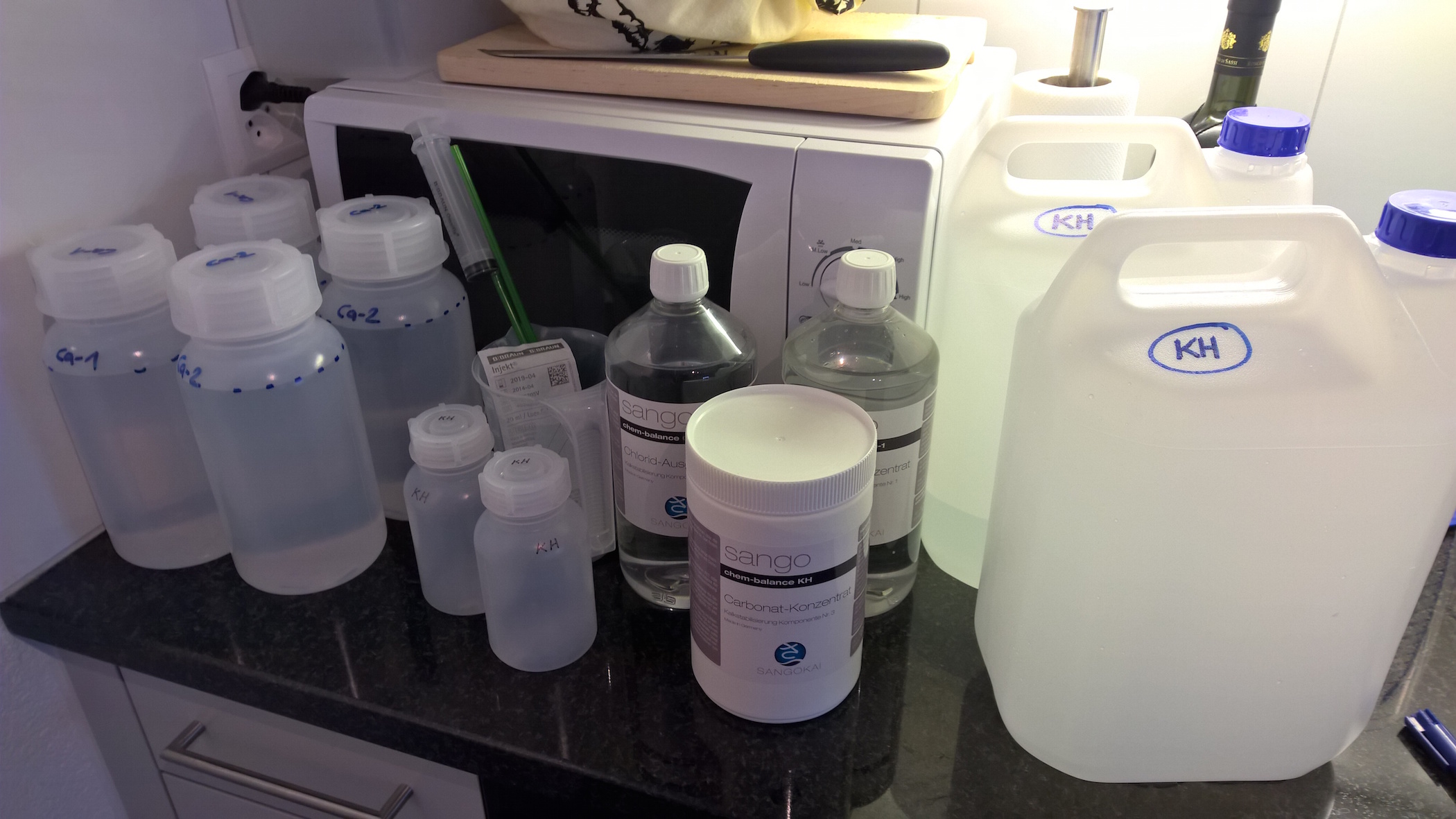 Das chem Ca1+Ca2 mußt Du nicht auf 30°C erwärmen das löst sich auch sehr gut bei Zimmertemperatur. Das chem-KH löst sich in der Tat besser wenn es wärmer ist, ich setze es aber immer an und laß es ein zwei Tage stehen und schüttel es gelegentlich durch das funktioniert auch sehr gut.