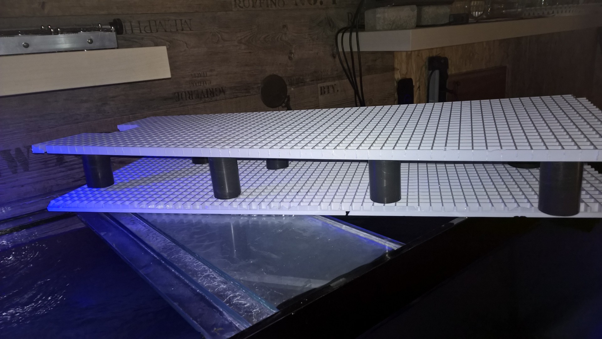 Beim letzten Bild siehst du wie ich die Lichtraster gemacht habe. Achtung es ist nur eine Platte mit den Stützen verbunden die zweite Lichtraster wurde nicht eingebracht. Das ganze steht also im Becken auf den Pfeilern.
