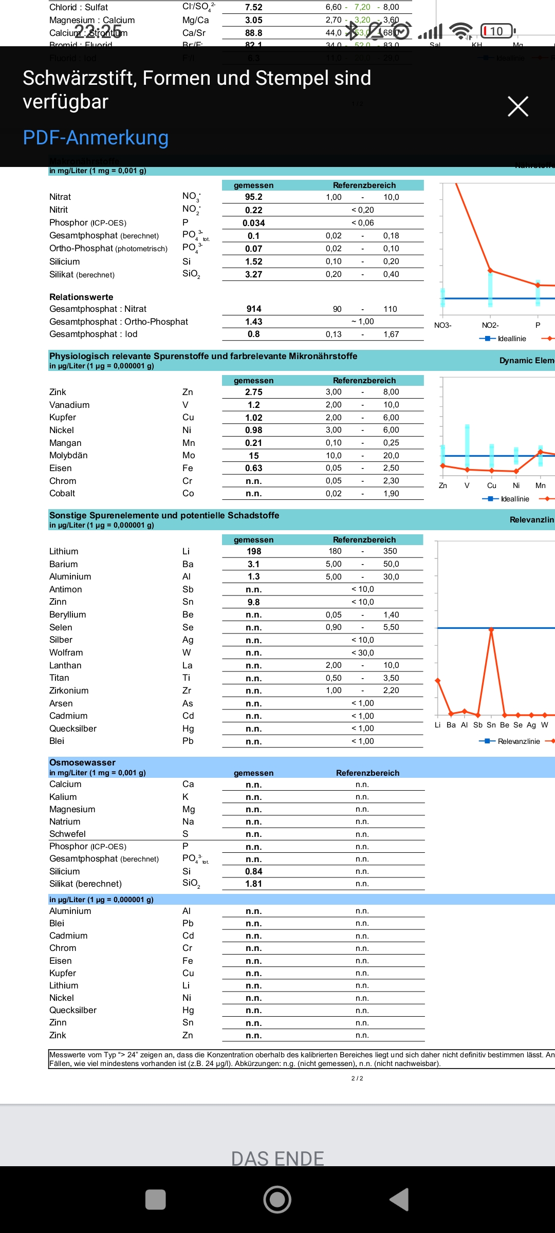 Letzte Messung vor der letzten ICP waren 40mg/l Nitrat, also im Vergleich zur Icp davor 20mg/l weniger. Was mich motivierte und mich auf eine besser aktuelle Icp hoffen lies. Doch diese kam gestern und versetzte mir einen Schlag.