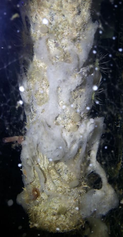 Hallo zusammen, es ist vollbracht. Meine Rohre sind wieder sauber. Innen waren so gut wie keine Verkrustungen oder Schwämme. Das hat mich verwundert; dachte da an mehr. Und das nach fünf Jahren in Betrieb. Dafür waren sie außen, wo sie im Wasser waren, ziemlich bewachsen. siehe Bild. Hatte die zwar die letzten Jahre immer so gut wie möglich davon befreit, aber es ist anders wenn man es komplett zurück baut und reinigen kann.
