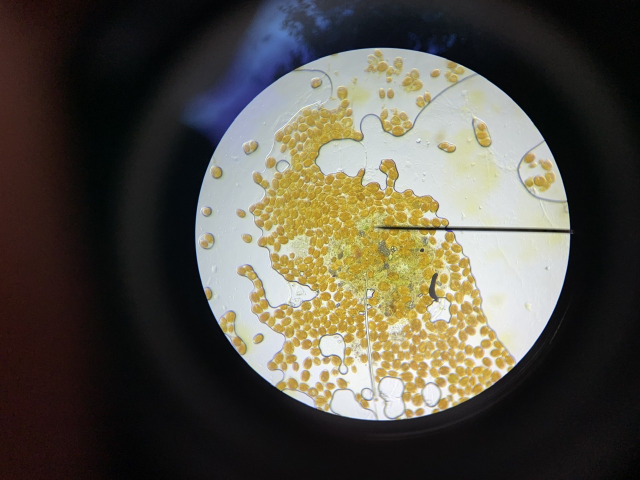 Zu der Frage bezüglich dem Bild vom Mikroskop. Hier habe ich einfach das Handy auf das Mikroskop gelegt. Also als wenn man mit dem Auge reinschauen würde aber halt mit der Kamera. Hat so sehr gut funktioniert.
