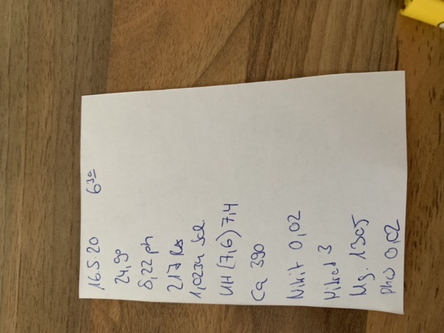 Anbei mal die gemessenen Werte von heute. Calcium habe ich erhöht.