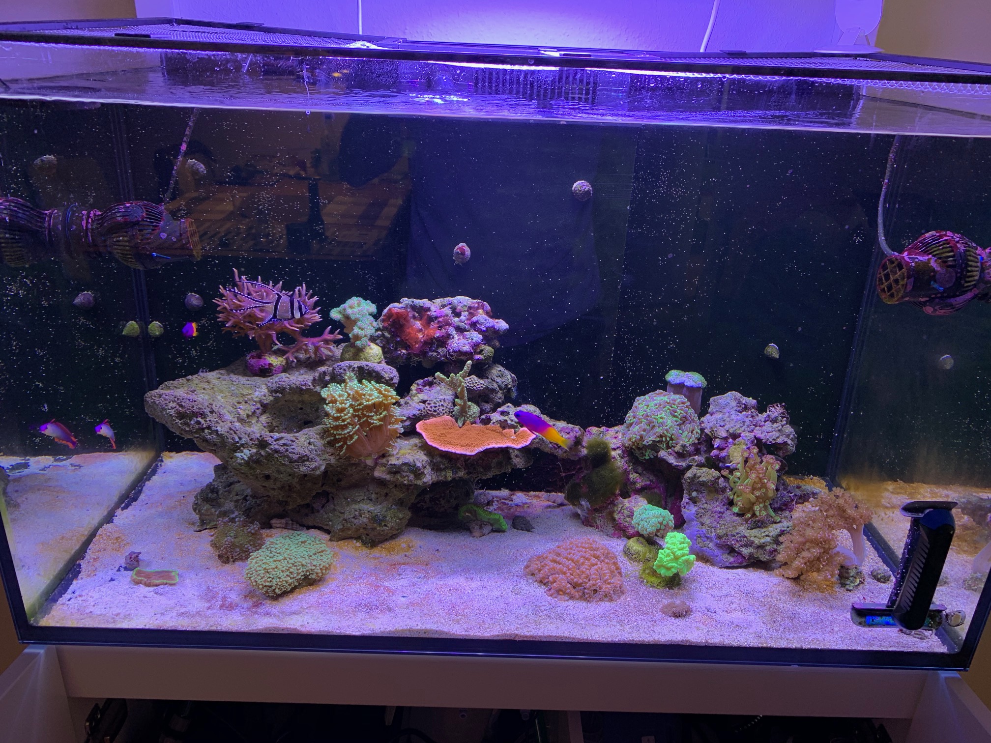 Nochmal eine Rückmeldung von mir: die Nährstoffproblematik hat sich tatsächlich irgendwie von selbst geregelt. Mittlerweile habe ich deutlich nachweisbares Nitrat (5 mg), auch ohne Dosierung. Leider bin ich die Dinos immernoch nicht ganz los, auf dem Sand bilden sich immer wieder braune Flecken. Die breiten sich nicht explosionsartig aus, verschwinden aber auch nicht. Die roten Cyanos sind auch fast weg, habe jetzt nur auf einem Stein etwas grüne.
