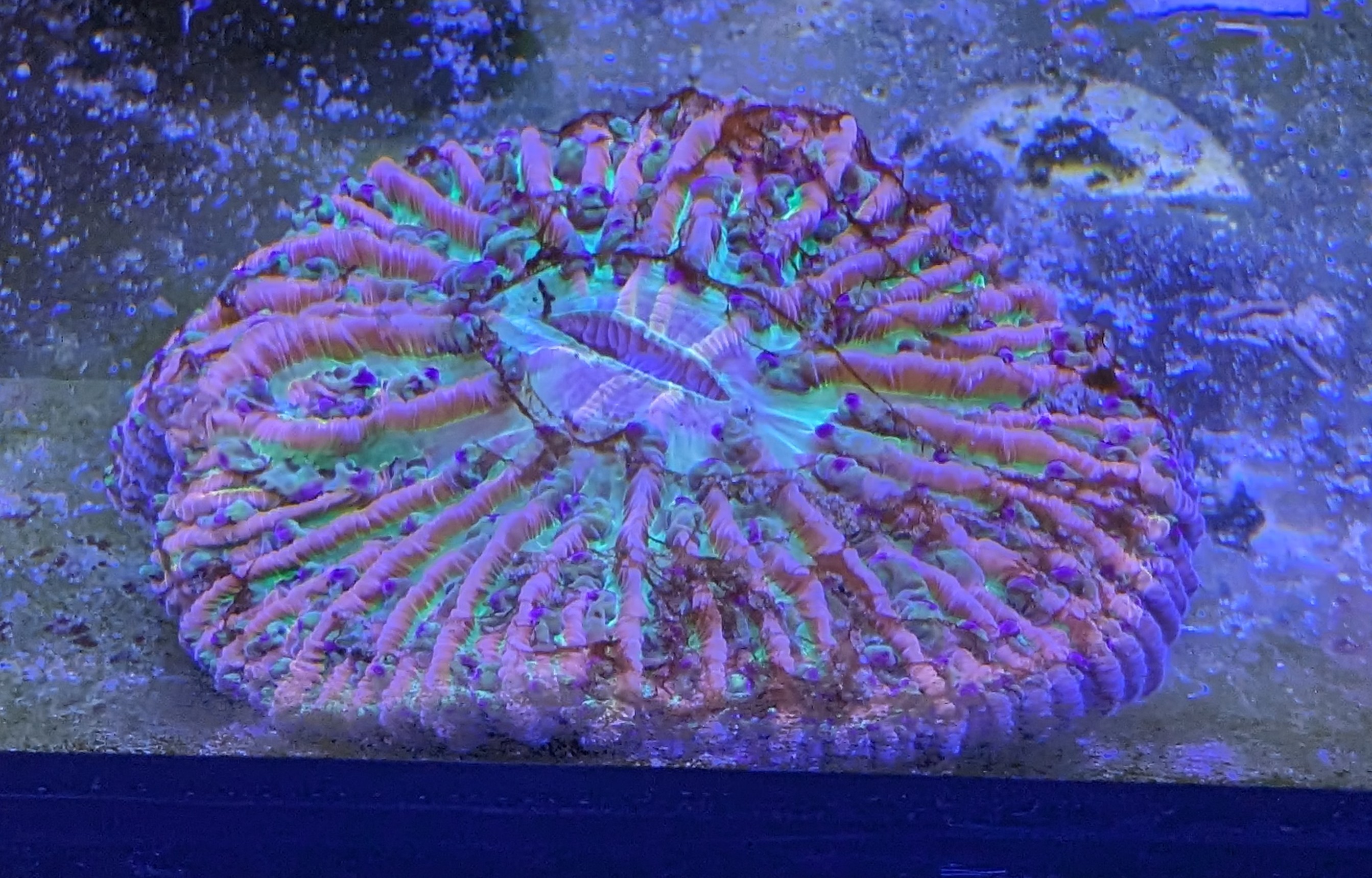 Ich habe die Maxspect RSX200 aktuell bei 80 Prozent. Habe vor 2 wochen eine PAR Messung durchgeführt und liege aktuell oben im Riff peak bei 170 und unten auf dem Boden so bei 100-110. Strahlungsstress würde ich mal ausschließen wollen. Weiß und blau sind bei gleichen Teilen. Sieht etwas blau aus denke ich weil die Handy Kameras ja immer zum blau neigen.