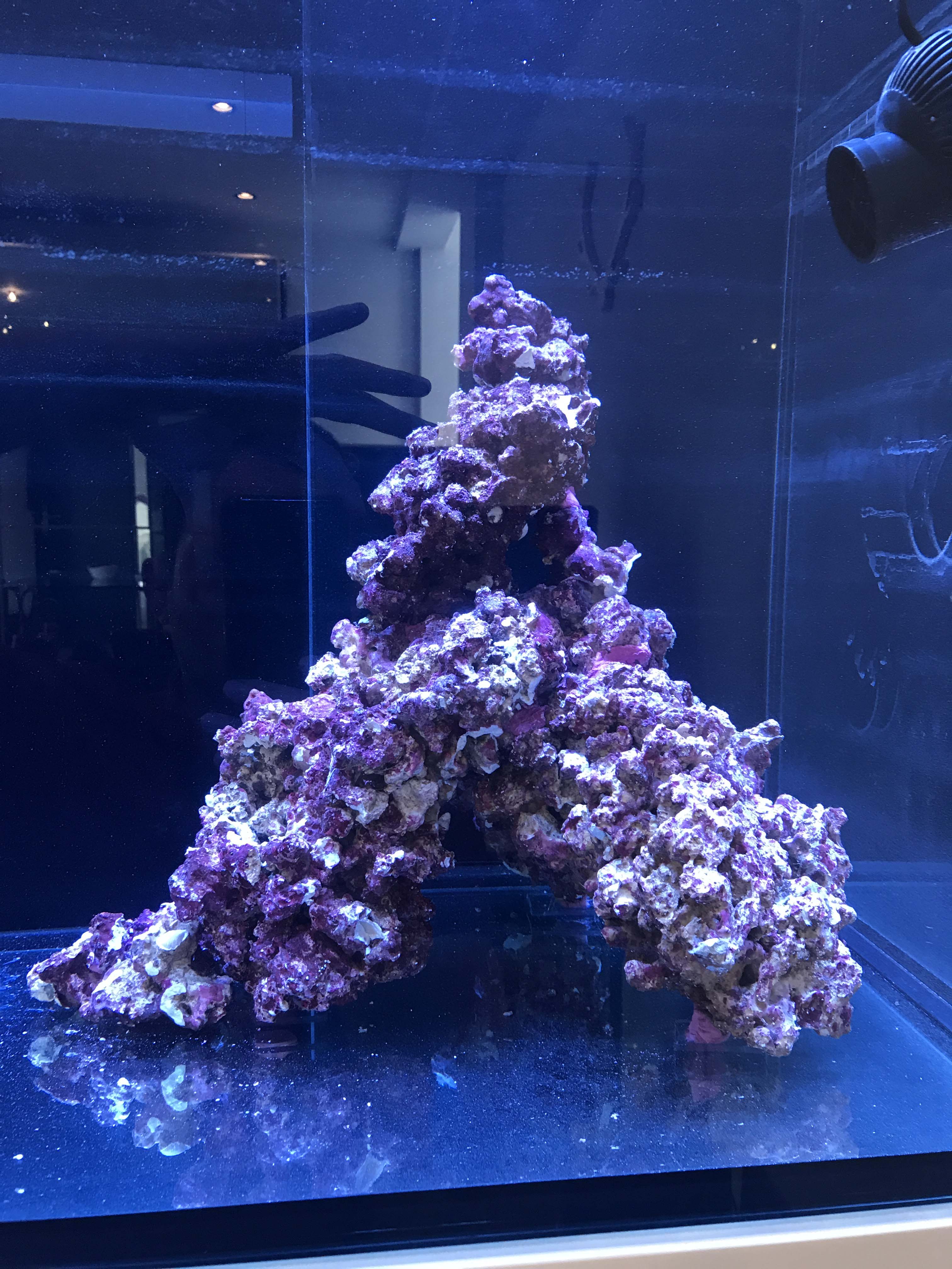 Hier der größere der beiden Rifftürme Die Auflagepunkte der Real Reef Rocks habe ich mit kleinen Plexiglasstücken unterlegt