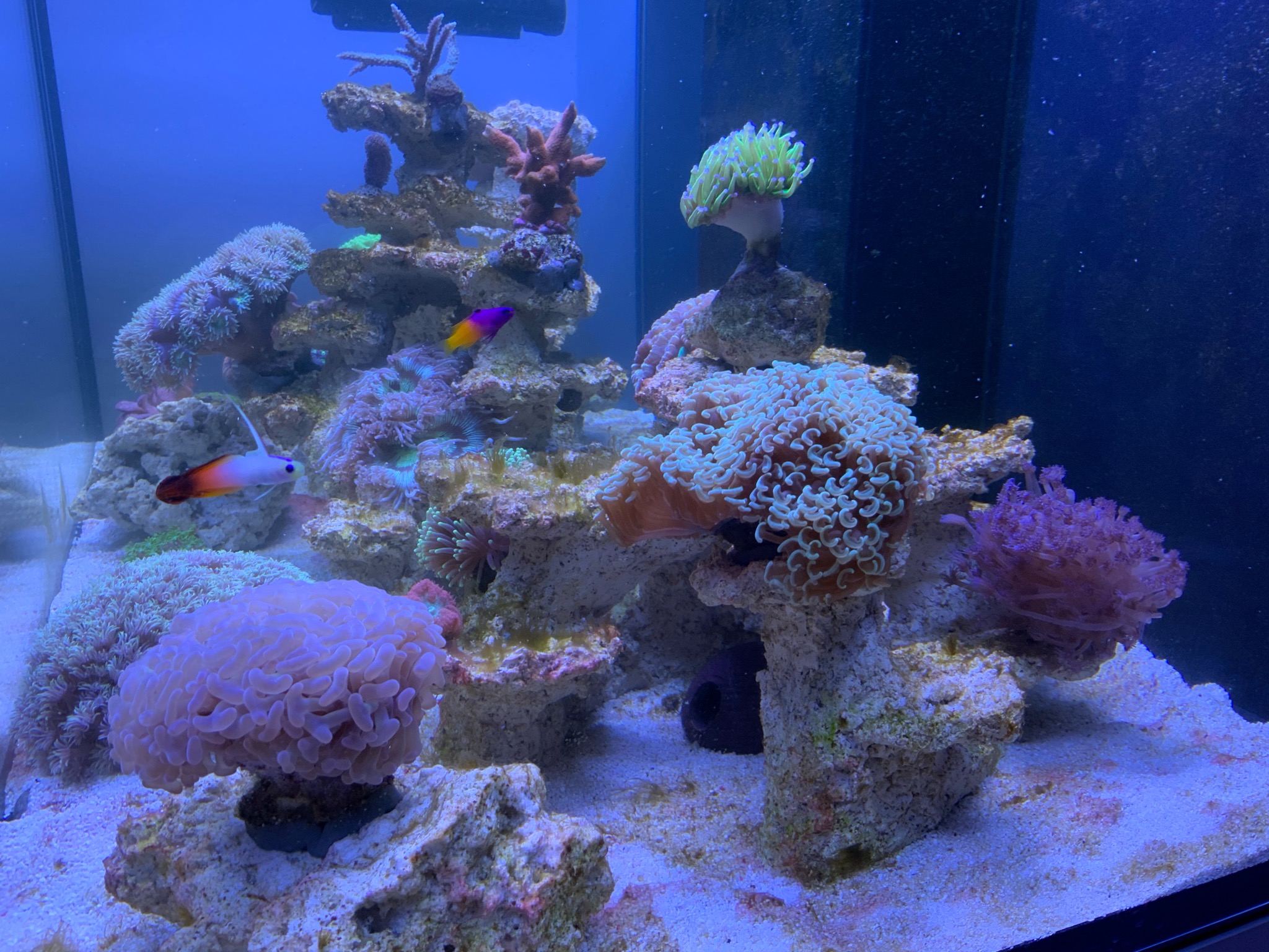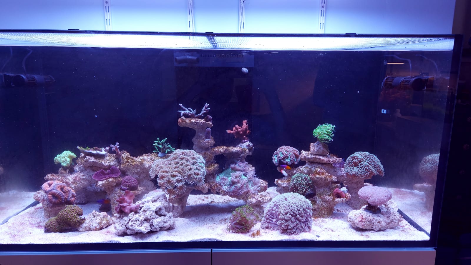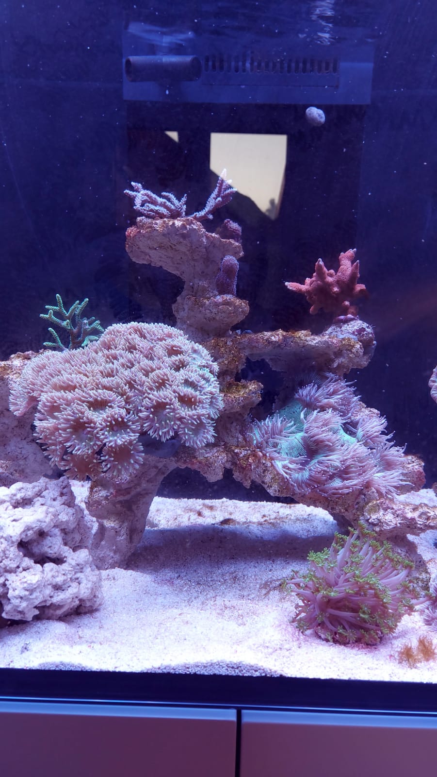 Am Sonntag rote Cyanos abgesaugt, heute schon wieder. Vorwiegend auf dem Sand, das Riff ist wenig behelligt. Sie sind also definitiv auf dem Vormarsch. Das hätte ich mir nicht gedacht, dass ich schon 5 Wochen nach Start ein Cyanoproblem haben würde. Beim vorherigen Becken war das erst nach Monaten ein Problem. Das ist ein unangenehmes Déjà-vu.