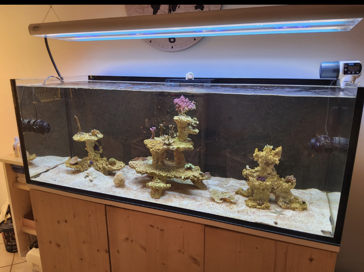 Wenn die Werte soweit passen muss da unbedingt Besatz in Form von Korallen rein, dabei sollten das schon gut gewachsene Tiere sein damit Masse rein kommt.