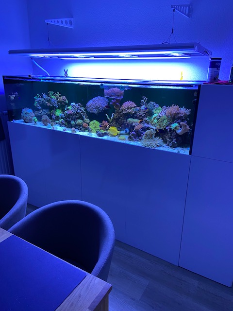 Leider habe ich aktuell ein Zinn-Thema im Becken, welches ich erst spät bemerkt habe. Da alle möglichen Verursacher bisher ausgeschlossen werden konnten, liegt die Vermutung nahe, dass es sich noch um Rückstände aus der Beckenproduktion handelt. Das Problem versuche ich gerade mit erhöhtem Wasserwechsel in den Griff zu bekommen ( wöchentlich ca. 80 Liter). Seit ein paar Tagen haben sich dann noch ein paar Cyanos auf dem Boden nieder gelassen. Das lässt sich aber sicher mit etwas Geduld (schwierig für mich) alles lösen. Ich werde berichten, sobald mir die neue Wasseranalyse vorliegt, die ich gestern versendet habe.