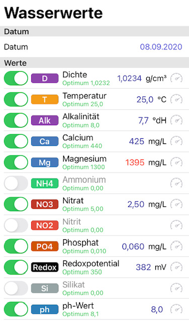Ich habe heute nochmals die Wasserwerte ermittelt, auch weil ich ja seit der Umstellung auf SangoKai noch nicht den Kalkhaushalt ( Balance Produkte) dossiere, da die Werte noch etwas höher waren. Nun kann ich wohl beginnen mit dem Balance, bzw. mit der 7 tägigen Ermittlung des Verbrauchs. Seltsamerweise hat sich zumindest MG trotz 0 Dossierung noch nicht reduziert. Die Phosphatwerte im Wasser sind mit 0,06 trotz dem Aufschalten eines Medienreaktors vor 3 Tagen (05.09.20) mit Diakat B und einer Dossierung von 150 ml / 100l noch nicht gefallen. Da mich das dann doch gewundert hat, habe ich den Sand untersucht. Gestern habe ich nämlich die Cynaos abgesaugt und dabei gut den Sand durchsaugt/aufgewühlt. Somit war es vielleicht logisch, dass Phosphat in das Wasser abgegeben wurde.