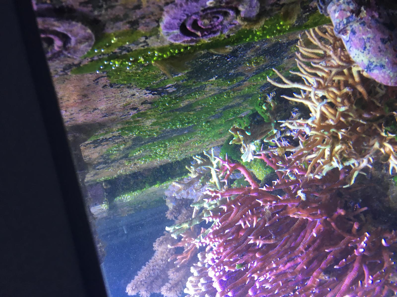 Deine Korallen geht es ja ganz gut, das ist die Hauptsache. Rechts die braune hystrix sieht nicht so dolle aus auf dem Foto, vielleicht täuscht das auch, aber das sitzen auch Cyanos zwischen und die wachsen normalerweise nur auf toten stellen. Eine gesunde Koralle wird von Cyanos meist nicht bedrängt.