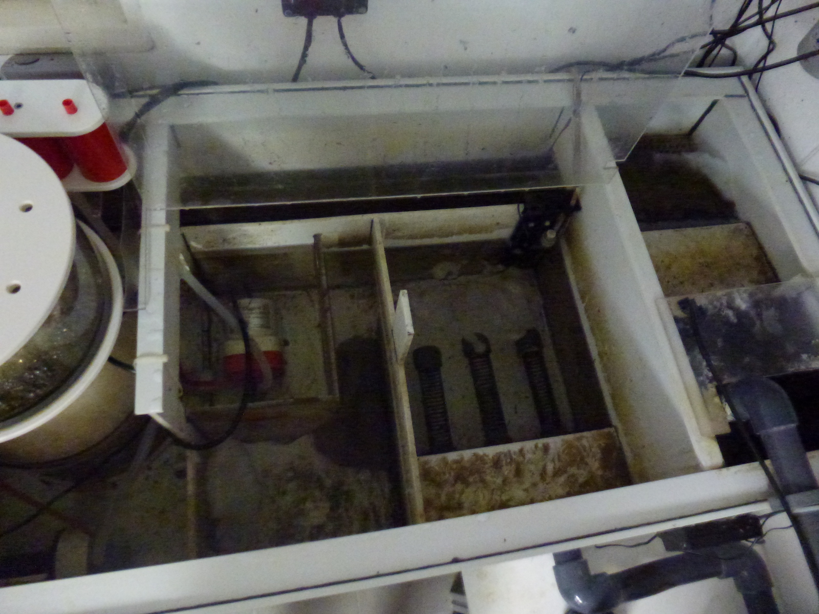 Sehe ich das richtig, dass das Wasser rechts einströmt und dann einmal hinten rum läuft um zum Abschäumer zu kommen?