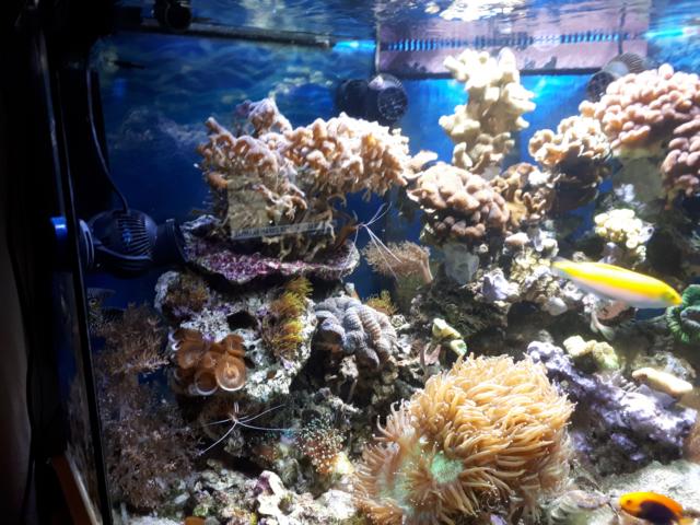 Mein Aqu. ist eine Anfertigung (Eckaqu.) mit 80cm Schenkellänge - ca. 265l plus 50l im Technikbecken - also Nettoinhalt ca. 240l (von 315l 75 für Gestein etc. abgerechnet).