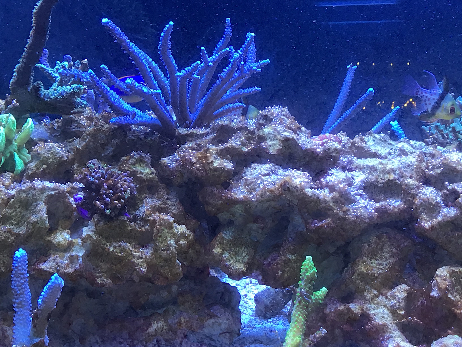 die Lampe hat die Einstellung laut Empfehlung, außer das Violet läuft auf 15. Die Röhren fahre ich zur Zeit mit 75 Prozent und die LED auf Max 50 Prozent. Wasserwerte liegen im Guten Bereich, außer das Nitrat noch bei 6 mg/l ist, Sinkt aber immer weiter mit jeden Wasserwechsel. Montag geht die nächste Wasseranalyse auf den Weg.