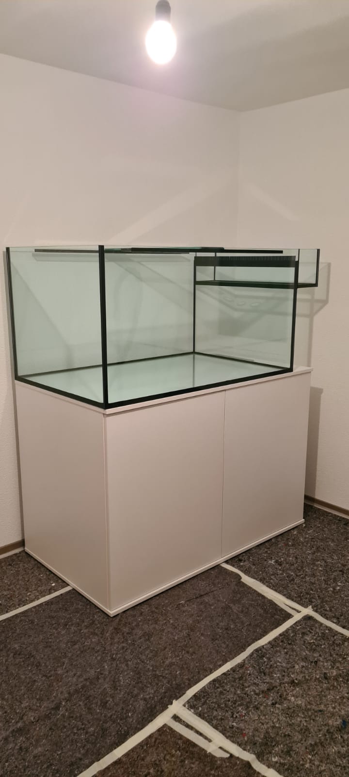 Schnell wurde mir bewusst, dass ein Raumteiler nur schön zur Geltung kommt und eine schöne Wirkung hat, wenn er eine gewisse Tiefe hat. Die Komplettaquarien von Red Sea wurden also Aufgrund dessen direkt wieder gestrichen und die Suche nach einem Aquarienbauer, der mir diese Sonderanfertigung realisiert, begann.