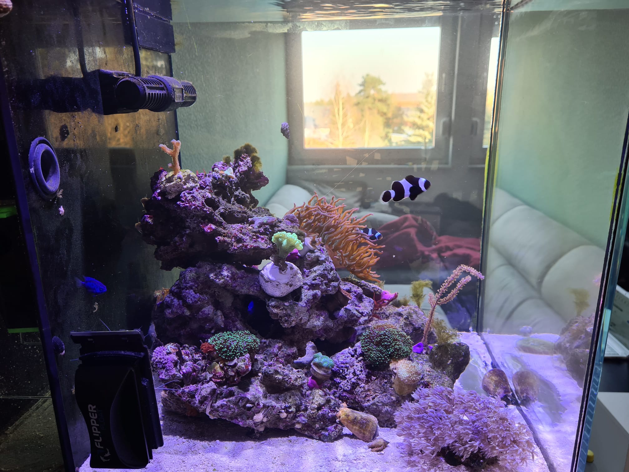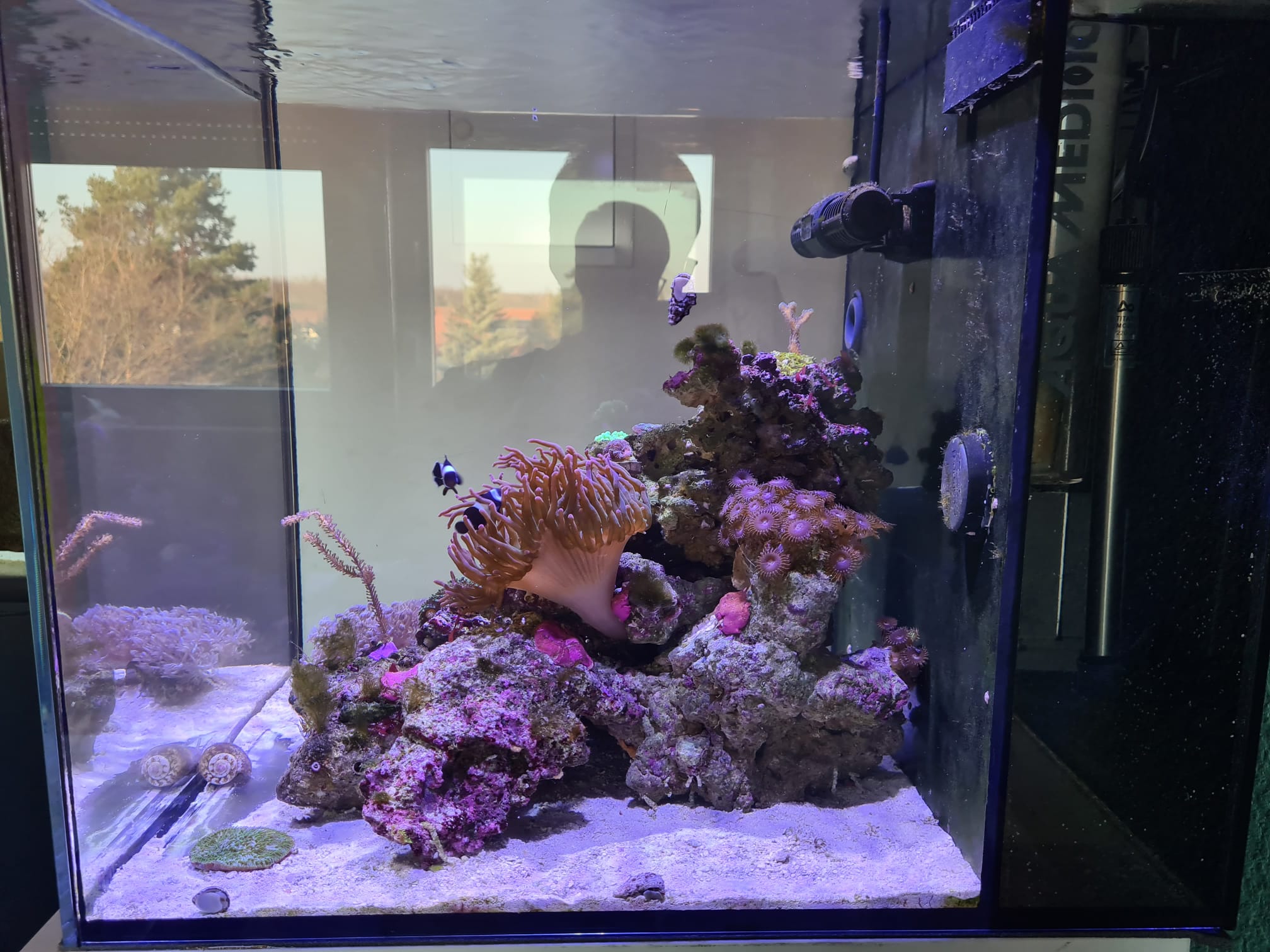 Danach habe ich neuen Besatz gekauft (Falscher Clownfisch, , Hirnkoralle, Turbo Schnecken,