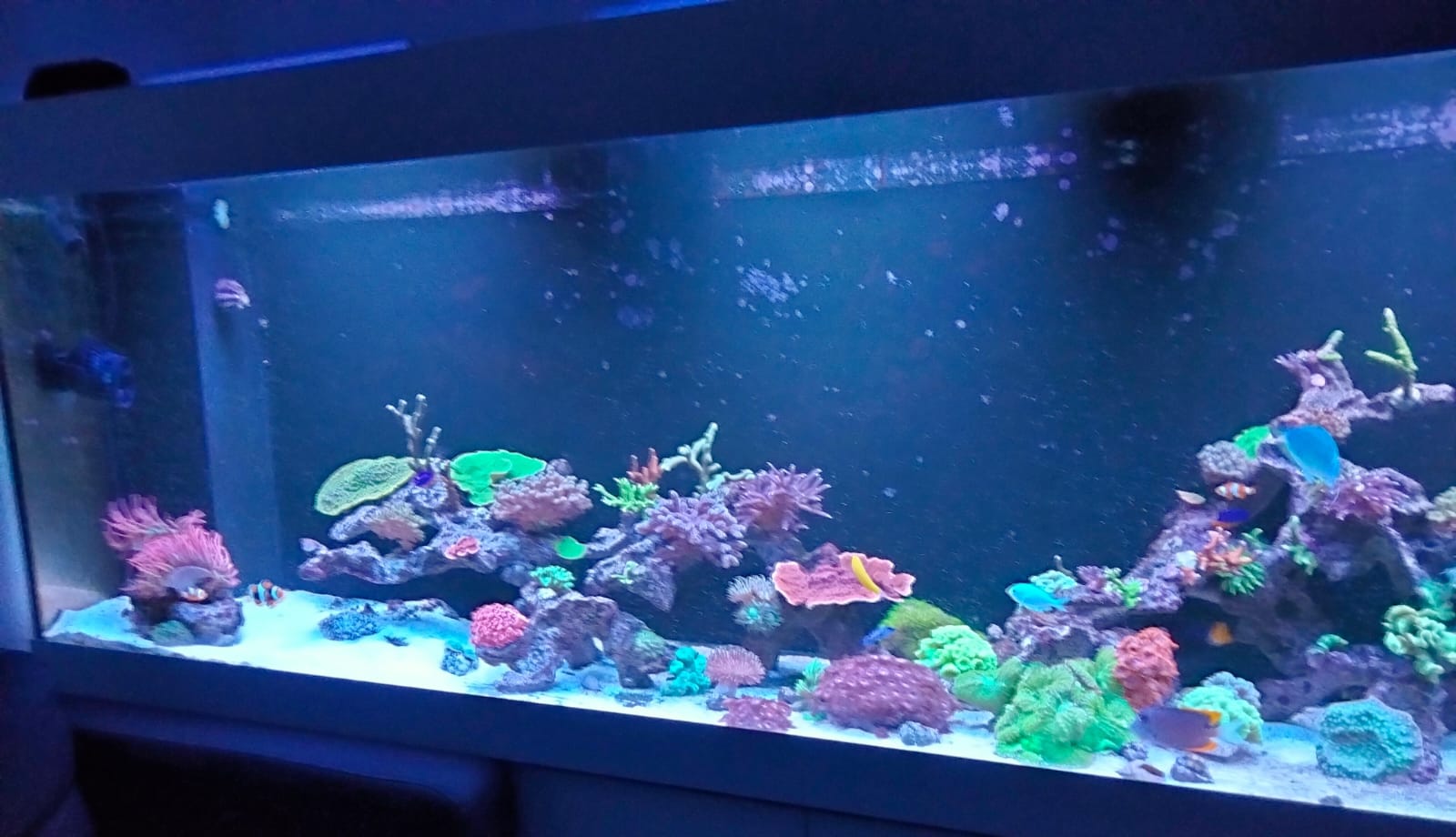 Gestartet wurde es Anfang März, es lief auch erst alles rund, ich habe schnell den Korallenbesatz erhöht und weil ich immer sehr knapp an Nährstoffen war den Fischbesatz nachgezogen. Trotzdem hatte ich, als die Algen anfingen zu wachsen Probleme mit den Nährstoffen, die haben einfach alles gezogen und Po4 und No3 waren nN. Ich habe dann beides vorsichtig dosiert bis es nachweisbar war. Ich arbeite im Moment mit ATI Essentials als Basisversorgung, und überlege die ganzen Ergänzungen von Sangokai zu beziehen.
