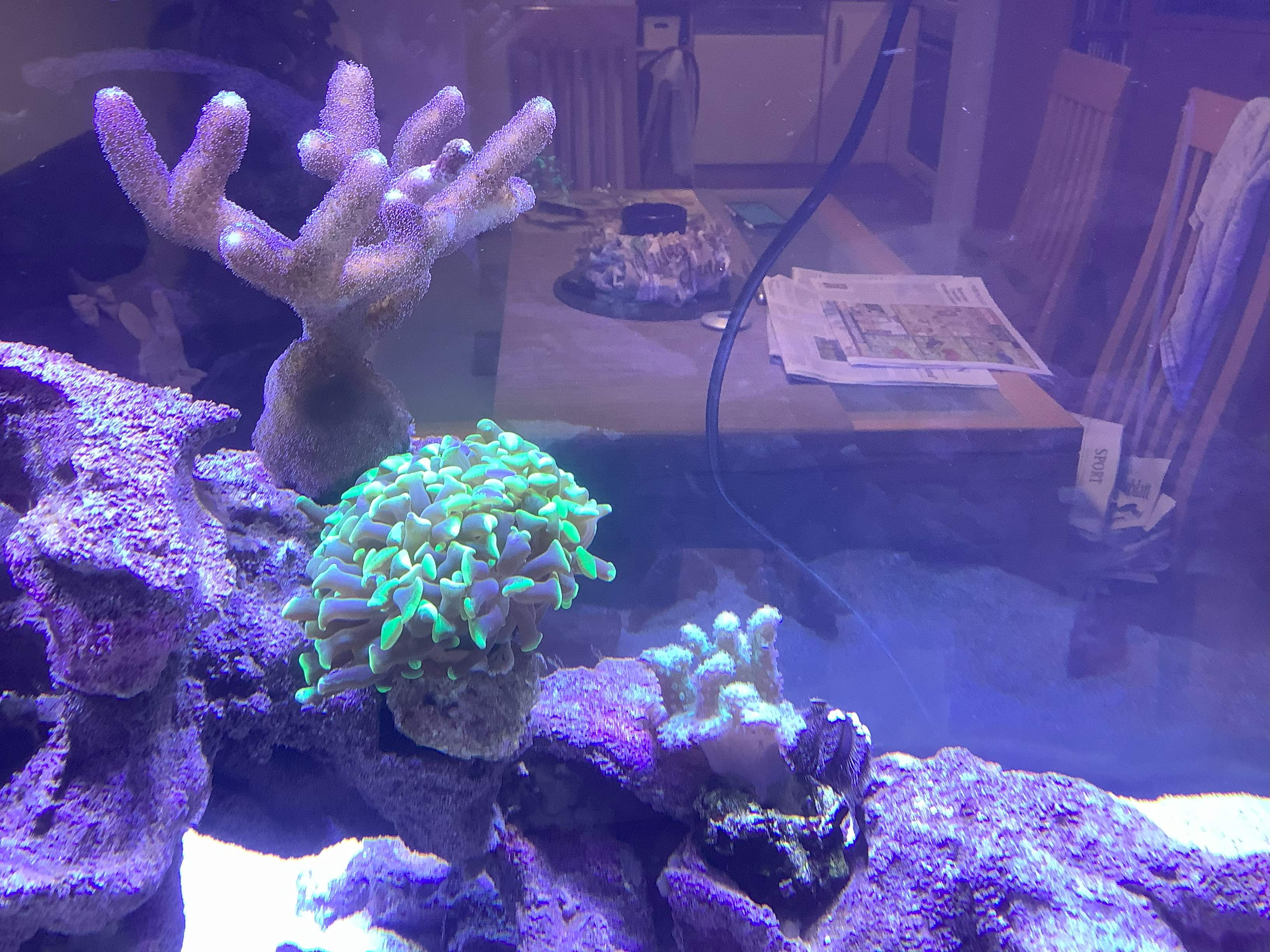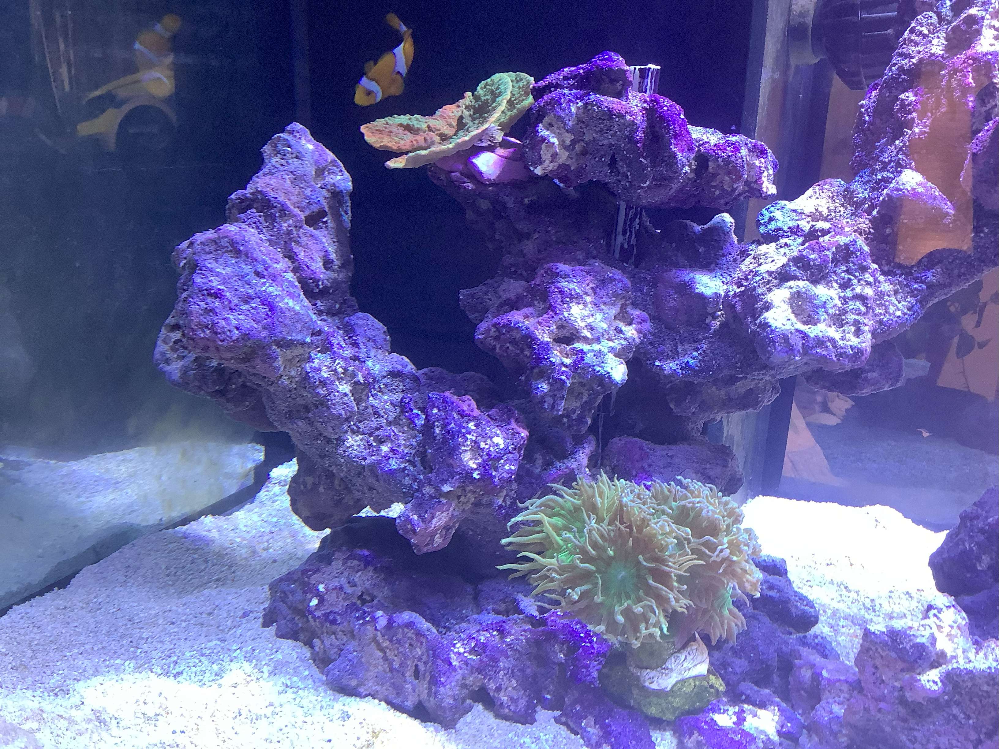 Am Wochenend hab ich weitere 4 Korallen nachgesetzt, sowie eine Cleaning Crew mit Schnecken und einen Seeigel und ein Clownfisch Pärchen.