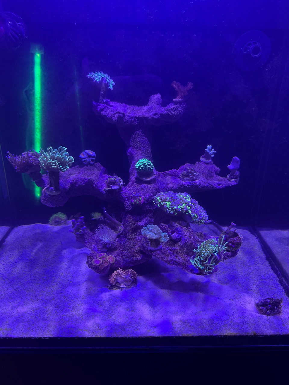 Becken schaut ja erstmal okay aus. Die gehen vermutlich eher zu, weil das Licht dann abends schon recht dunkel wird, weniger aufgrund von Strahlungsstress, aber ganz ausschliessen kann ich das auch nicht. Ich würde bei der Red Sea immer Weiß auf 100% laufen lassen, weil die Lampe arg blau ist und darüber bekommst Du dann etwas mehr Helligkeit rein, natürlich auch etwas mehr Leistung natürlich.