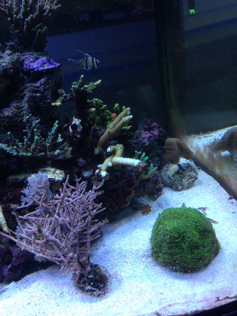 Fischbesatz: 1 Hawai ,1 Chelmon rostratus, 2 Fridmani,2 Kaudeni,5 Chromis,1 valencia puelaris,2 ocellaris,2 lsd mandarin, 1 globulus diverse schnecken und einsiedler wurden alle vom alten Becken mit übernommen.