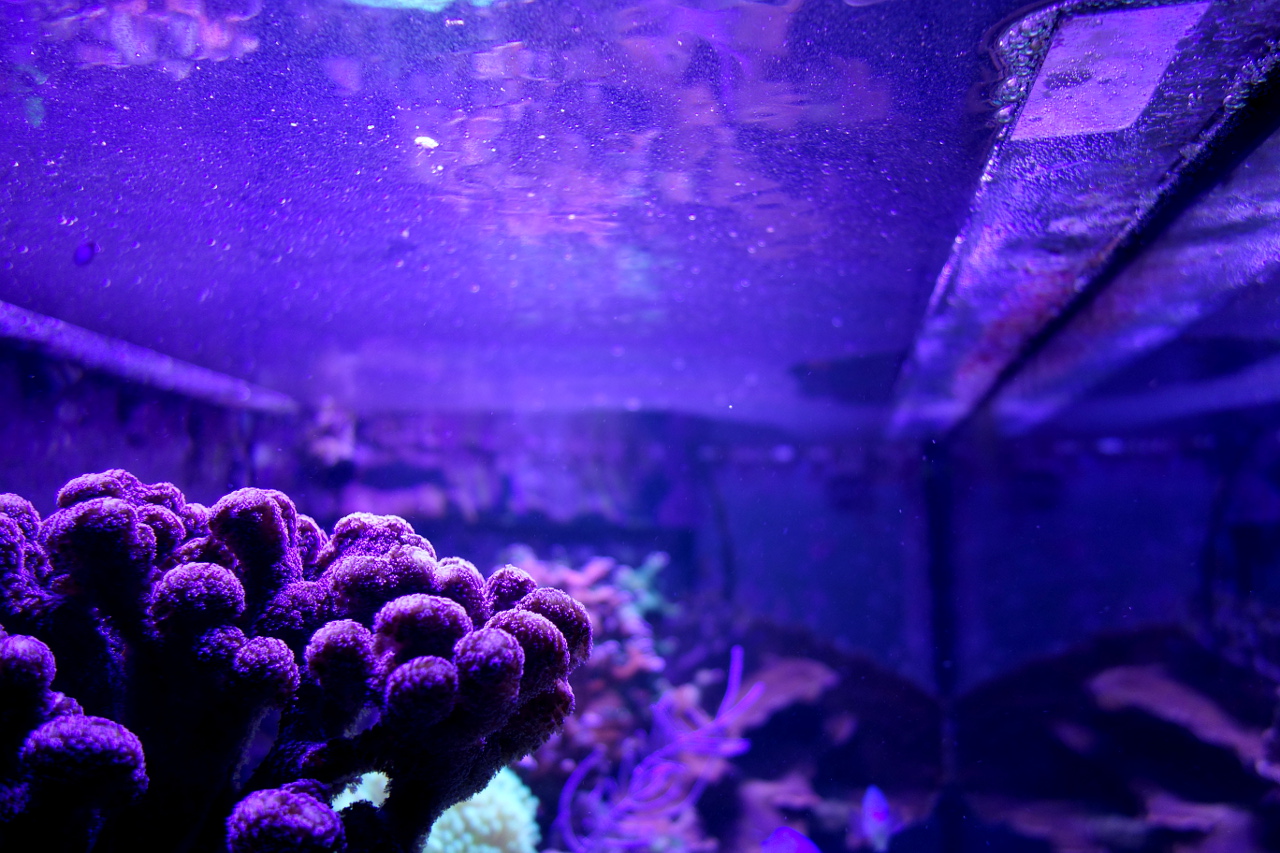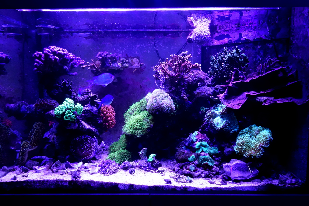 • Die Korallen stehen alles in allem gut da. Allerdings habe ich ein massives Aufkommen von kleinen Seesternen jeglicher Form :>, die sich scheinbar ganz gern an die SPS setzen, sodass von unter her Gefahr droht. Ich versuche derzeit den Bestand zu minimieren, in dem ich mit dem Kecher, zu gewissen Zeiten die Scheiben abgrase. Wenn sich die Situation nicht bessert, werde ich wohl zur Garnelenattacke blasen.