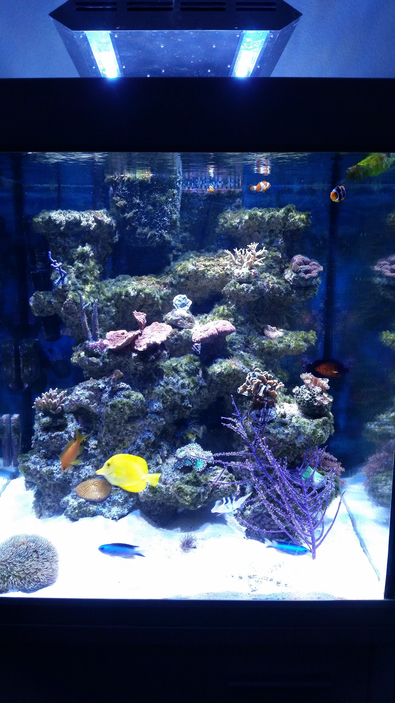 Beim Fischbesatz würde ich eher den Flavescens raus genommen und die Fahnenbarsche als kleine Truppe aufgestockt. Kugelfisch ist immer so eine Sache auch was SPS angeht, irgendwann kann es halt passieren das diese immer wieder an den Polypen picken.