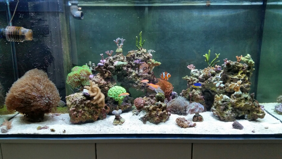 Die Korallen stehen gut, Farben sind da, klares Wasser und so gut wie keine Cyanos geschweige den Algen.