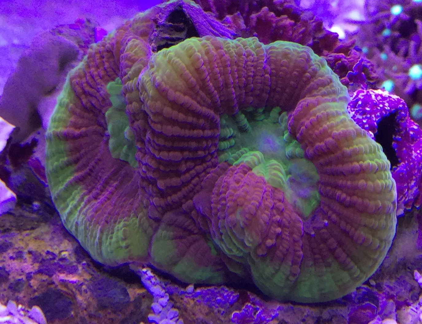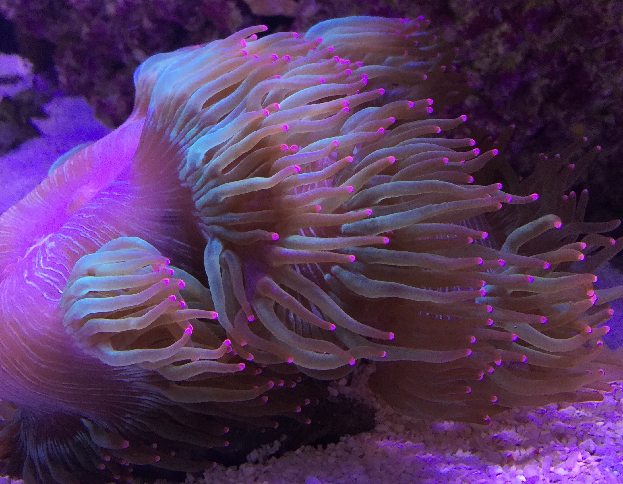 Der Schleimfisch ist auch ganz interessant, ist lustig zu beobachten wie er sich in die kleinsten Lächer im Riff zurückziehen kann, während der Futterpause wird auch gerne das Rohr vom Rücklauf genommen, bis die Pumpe dann wieder angeht