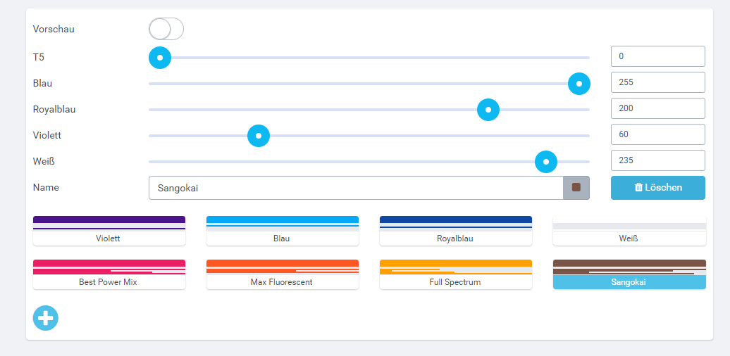 Momentan stehen die LED auf 65%, sieht man nicht so gut auf dem Bild. Waren ganz am Anfang auf 50% und wurden langsam gesteigert auf 75%. Seit den Cyanos auf 65%.