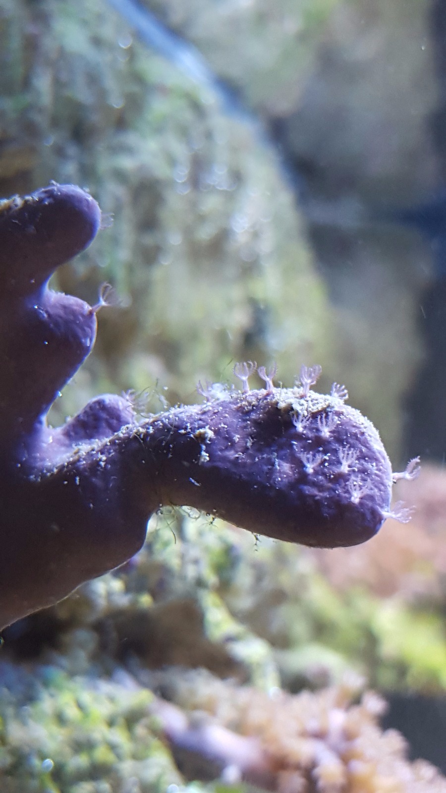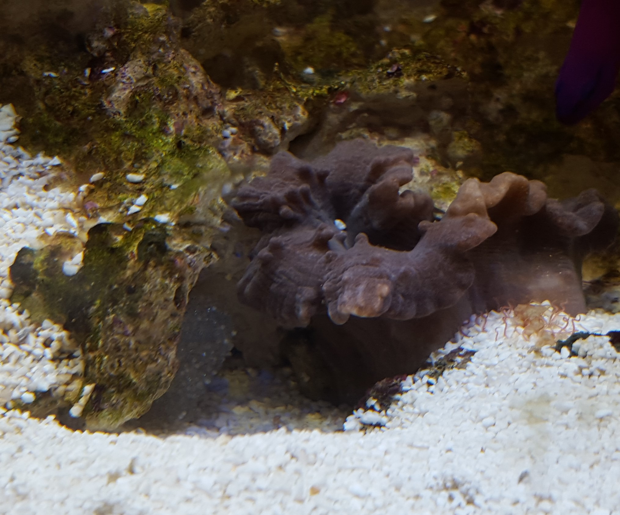 Ansonsten gebe ich dem Becken aktuell viel Zeit. Korallen wurden nicht besetzt. Die Heliopora coerulea zeigt seit einiger Zeit ein paar Polypen. Weitere Korallen sind nicht gestorben. Aber ich müsste lügen, würde ich behaupten, dass ich ein gutes Wachstum habe.