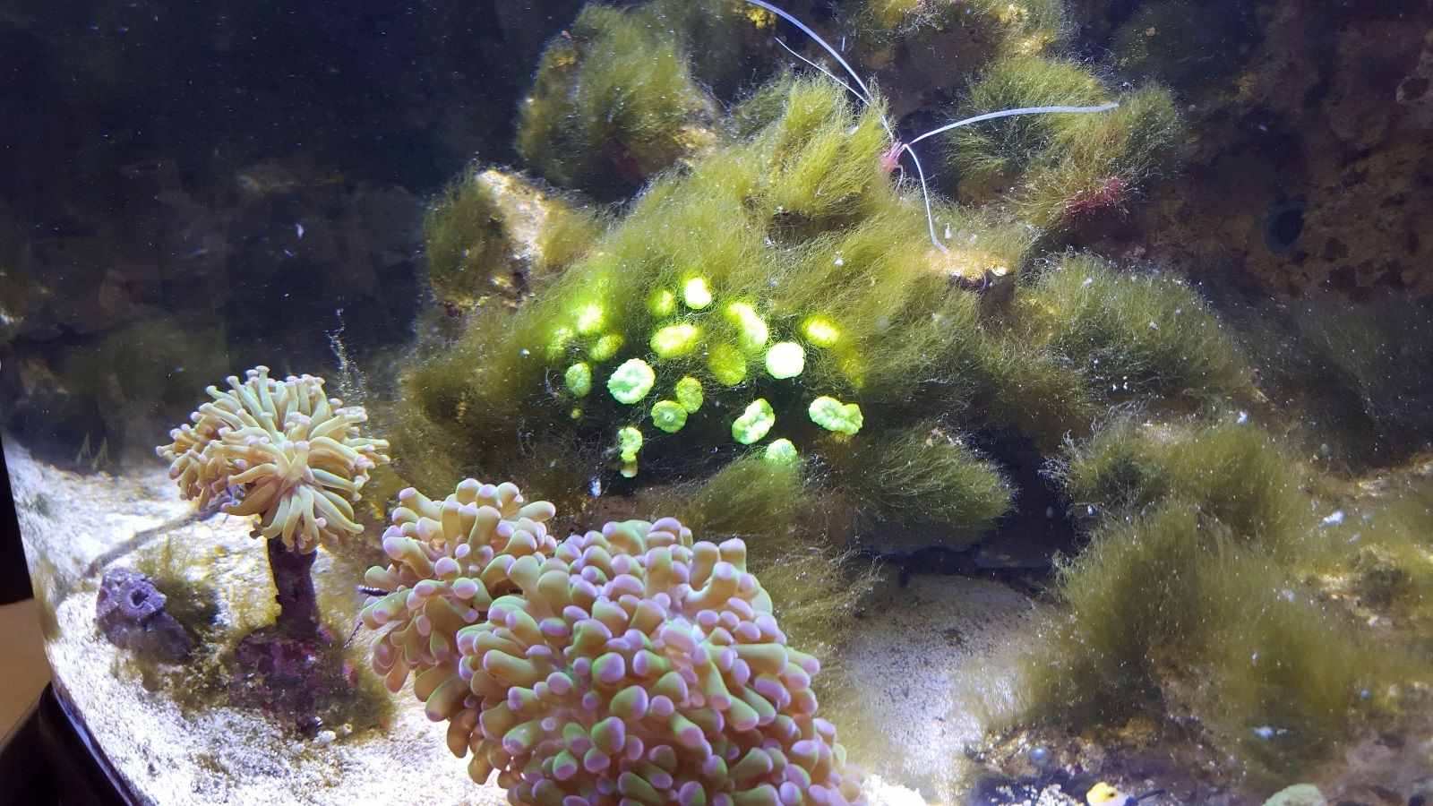 Die Scherengarnelle habe ich vor kurzen das erste Mal gesehen. Die ist also ziemlich scheu. Die Anemone wurde immer kleiner. Irgendwann war Sie einfach weg. Keine Ahnung warum. Allerdings haben die Clowns die nicht mal angesehen. Eigentlich würde ich gerne eine einsetzen, aber so recht traue ich mir das nicht.