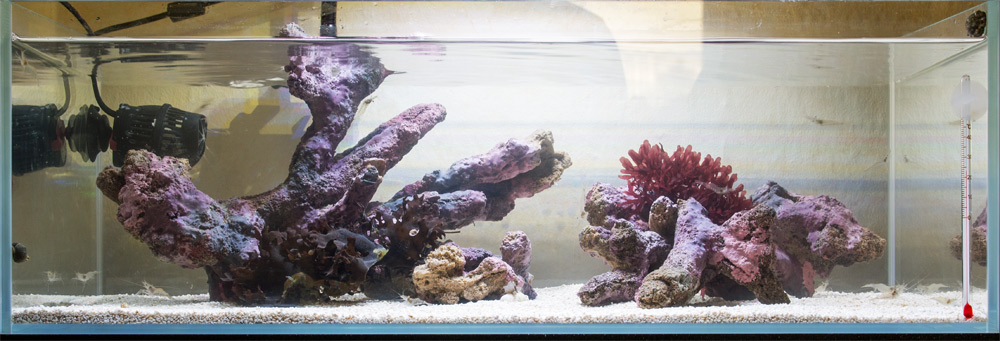 Das Nordseewasser hat eine geringfügig geringere Dichte als die normalen 1.023, aber bei Verwendung von etwas mehr Salz im künstlichen Meerwasser läßt sich das gut ausgleichen. Ich habe da jetzt schon ein halbes Jahr Übung drin.