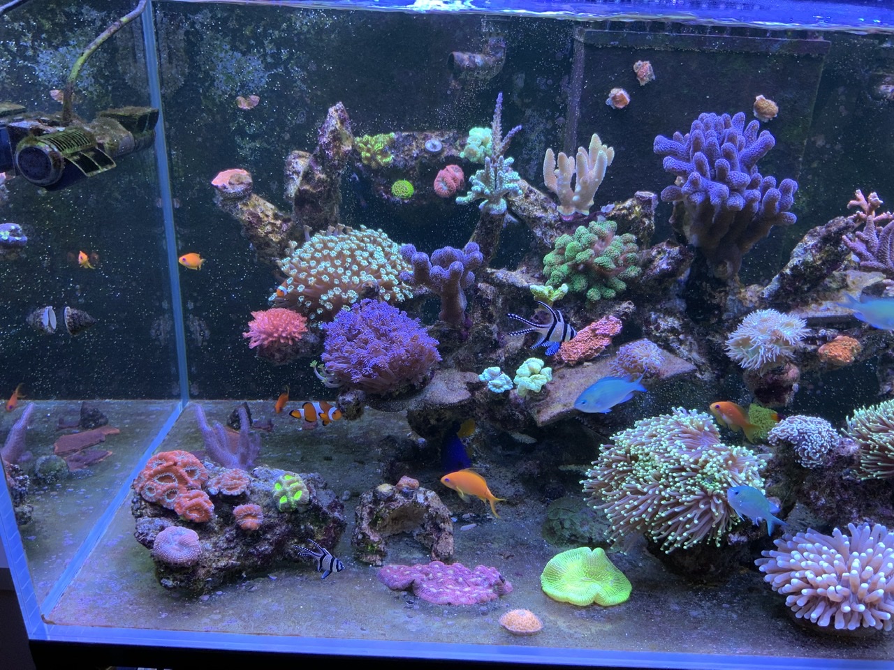 heute möchte ich mein Aquarium vorstellen. Ich habe ein 400L Mix Becken das seid kurzer Zeit mit zwei ATI Straton beleuchtet wird. Gestartet habe ich das Becken im November 2020 bestehend aus meinem "Beginner Becken" mit 180L. Dies Stand 9 Monate.