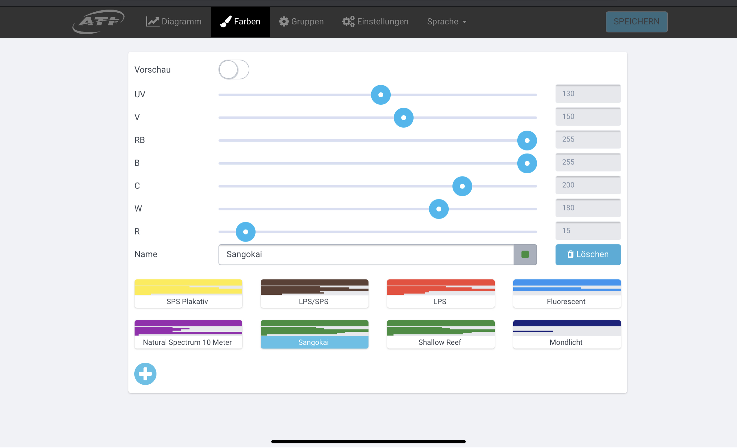 Beim Licht würde ich persönlich ein paar Änderungen vornehmen, ich arbeite aus Sicherheitsgründen immer sehr vorsichtig mit uv und violett. Hast du Probleme bei den Korallen?