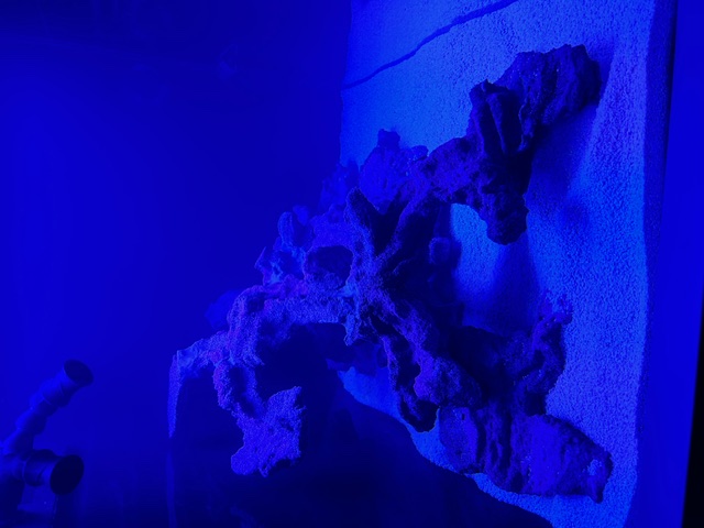 3 kg Lebendgestein sind im TB beleuchtet mit einer Tunze Refugiumleuchte und bströhmt mit einer kleinen Pumpe.