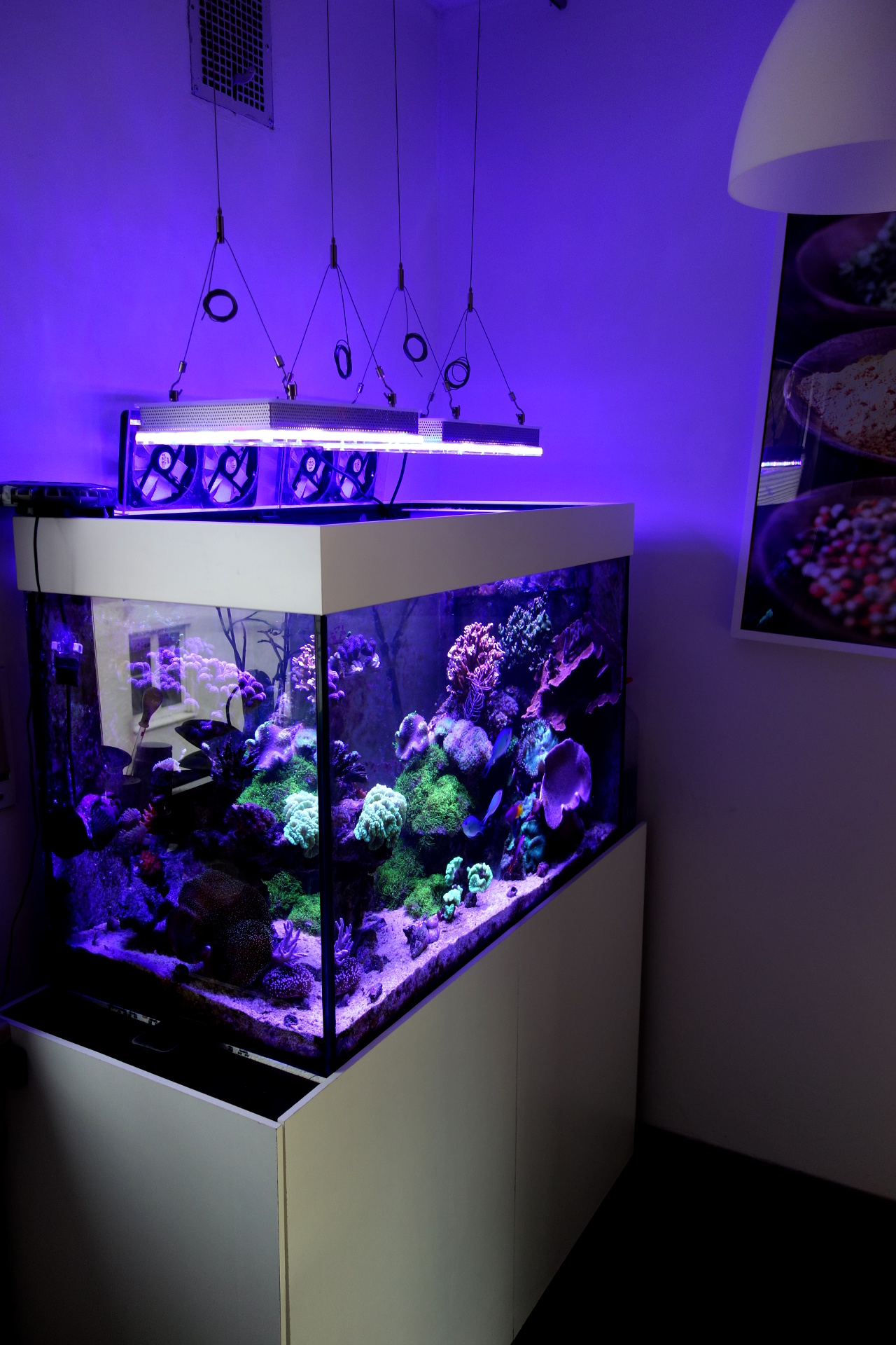 Da mich die Farben diverser SPS reizen, las ich mich in die LED-Technik mehr und mehr ein und erkannte, dass meine Vertex-Lampen nicht das halten können, was sie versprechen, geht es um anspruchsvolle Tiere. Daher machte ich mich auf den Weg zu buntesriff und bestellte mir 2 orphek Compact Wifi V3 LED-Lampen, die seit gestern über meinem Becken hängen. Damit möchte ich mich von meinen Vertex sowie DYI-LED trennen. Im Gespräch mit ihm unterhielten wir uns über Beckenchemie und dergleichen, worauf wir auch auf das Thema Sangokai kamen. Er sprach von dosiertem Regeln der Nitrat/Phosphatwerte, was mich mit meinen Anschaffungen wie Pelletfilter und Multifilter und diverser verringernderen Mittelchen etwas aus dem konzept brachte. So stolperte ich immerwieder über Berichte über Hilfe durch euer Team.