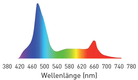 es ist immer ungeschickt, wenn der Hersteller die Wellenlänge der LED nicht angibt. Es sind 6 W Cree™ XP-G3 verbaut. Henning Wiese hat die AquaBAR 60+ vermessen, als Spitzen- oder Peakwellenlänge λp gibt es folgende Werte an: