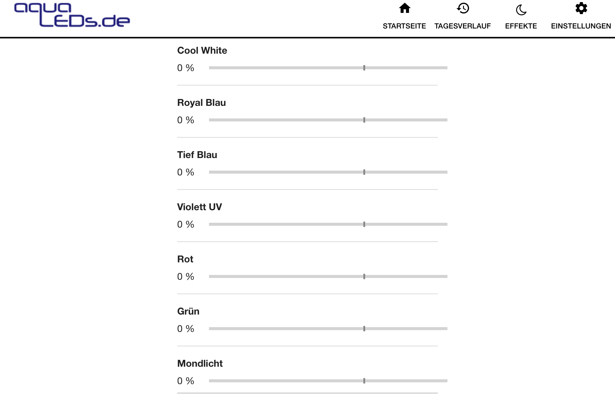 hättet ihr eine Empfehlung für mich, in welcher prozentualen Zusammensetzung ich die einzelnen Kanäle (Cool White, Royal Blau, Tiefblau, Violett UV, Rot, Grün) einstellen sollte?