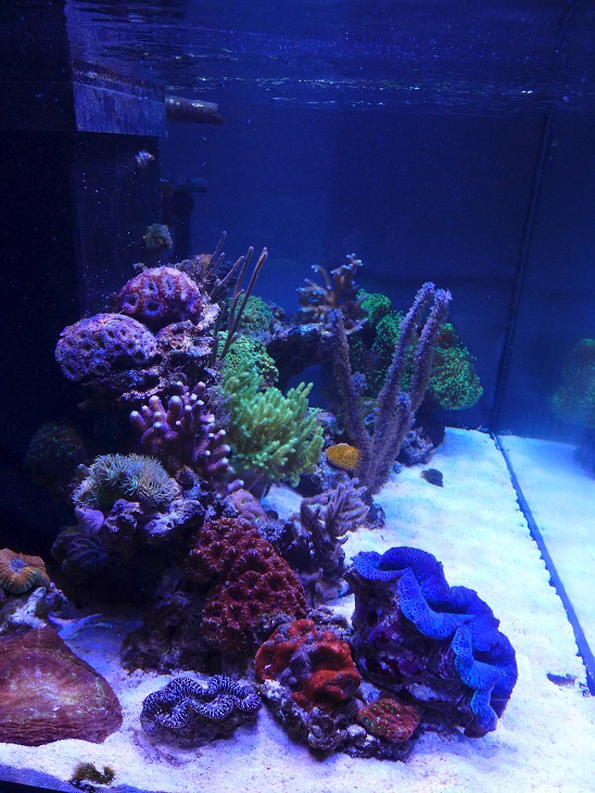 Durch den Futterautomaten (mit Granulatfutter und Flockenfutter bestückt), welcher leider während meines Urlaubes zu großzügig dosiert hat, ist der Phosphatwert etwas stärker angestiegen und das hat sich sofort bemerkbar gemacht. An vielen Stellen sind verstärkt Fadenalgen zu sehen, welche aber wieder langsam zurück gehen. Habe da einfach mal noch ein paar Korallen als Verbraucher eingesetzt, hoffe das noch junge System stabilisiert sich wieder schnell.
