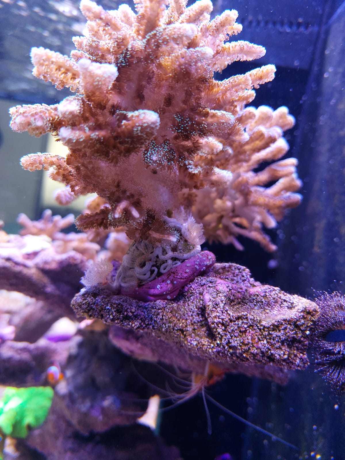 Jetzt zum Schluss hab ich dann noch eine Frage, am Ablegerstein meiner Seriatopora wachsen seit kurzem einige Röhrenwürmer, aber nur dort und bei einer Euphylia auch am Ablegerstein.